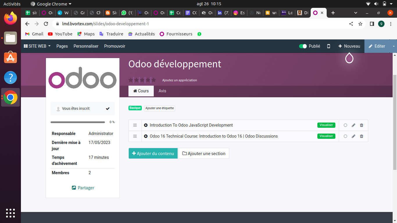 Grâce à son interface intuitive et conviale, Odoo LMD est facile à prendre en main, même pour les utilisateurs novices. Vous pourrez ainsi gagner du temps et vous concentrer sur l'essentiel : offrir d'apprentissage de qualité à vos étudiants.
